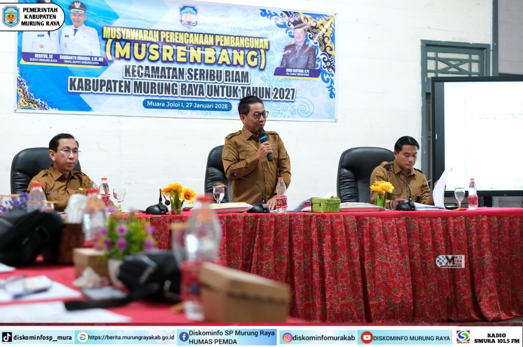 Murung Raya, Info Publik – Bupati Murung Raya (Mura), Heriyus membuka secara resmi kegiatan Musyawarah Perencanaan Pembangunan (Musrenbang) tingkat Kecamatan Seribu Riam yang dilaksanakan kantor Kecamatan setempat, Selasa (27/1/2026).